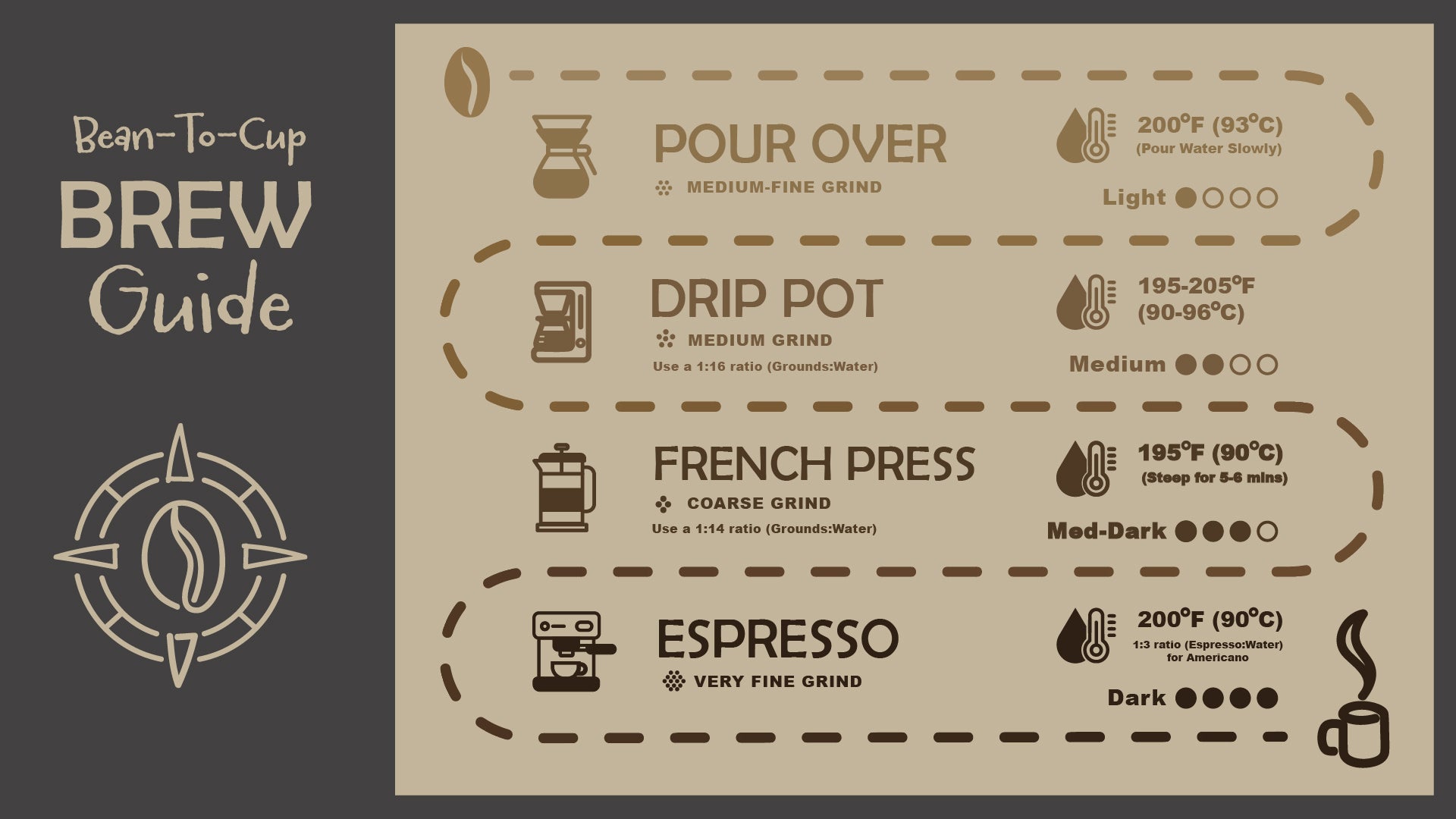 Every brew method has its sweet spot. Roast, grind, and heat all shape the flavor. Use this guide to find your perfect adventure brew.